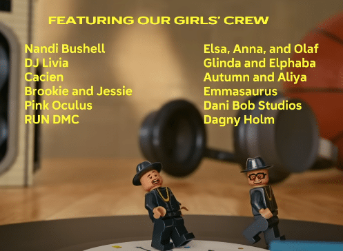 The campaign debuted with a reimagined version of RUN DMC’s “It’s Like That.” On paper, it’s an energetic girl-power anthem featuring a global crew of young talents, plus cameos from LEGO content creators Danibobstudios and Emmasaurus.